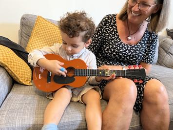 När jag själv fick barn upptäckte jag snabbt att stunderna lätt kunde bli stökiga och svåra att hantera. Men när jag började använda gitarren och spelade enkla, roliga barnvisor förändrades allt. Barnen började lyssna, engagerade sig och vi hade OTROLIGT roligt tillsammans.