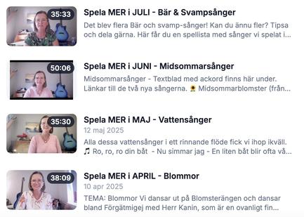 Temalektion - Den spelas in, så du kan se dem i efterhand. Det finns nu ett stort bibliotek av roliga sångstunder att ta del av.