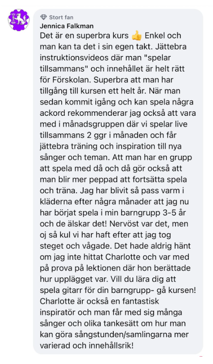 I slutet av prova-på-lektionen berättar jag om min populära onlinekurs – perfekt för dig som vill ta nästa steg, lära dig fler ackord och skapa ännu roligare sångstunder.